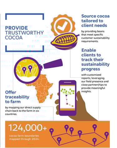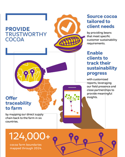 Sourcing cocoa beans and products from all major producing regions. The company operates warehouses and export facilities in key origins and supplies around 500,000 tons of beans annually to leading chocolate manufacturers worldwide.